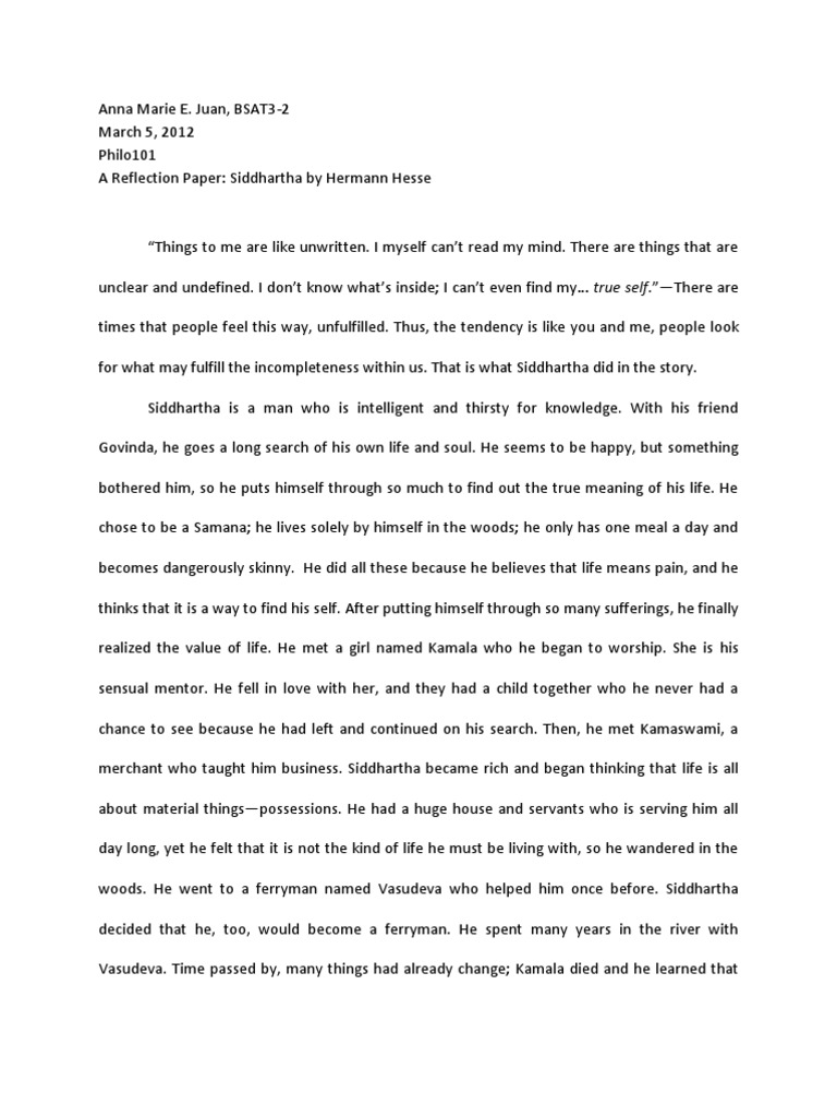 A Reflection Paper Of Mumbaki Film Free Essay Example from studymoose.com For instance, the writing of reflective papers provides instructors with a means of evaluating a student's internalization of course content. Possibly your female parent is critical of you. The writer then writes about those experiences, exploring how he or she has changed, developed or grown. Most students commit mistakes while composing a reflection paper. You might be required to arrange your essay using the apa style or the mla format. A reflection paper is less formal as compared to the traditional academic paper. What to write in the body well, here, you write about all that you feel. A good reflection paper shows your thought process and analysis about an event you witnessed, a book you have read, a motion picture you have viewed, or even, about a person you have observed.
